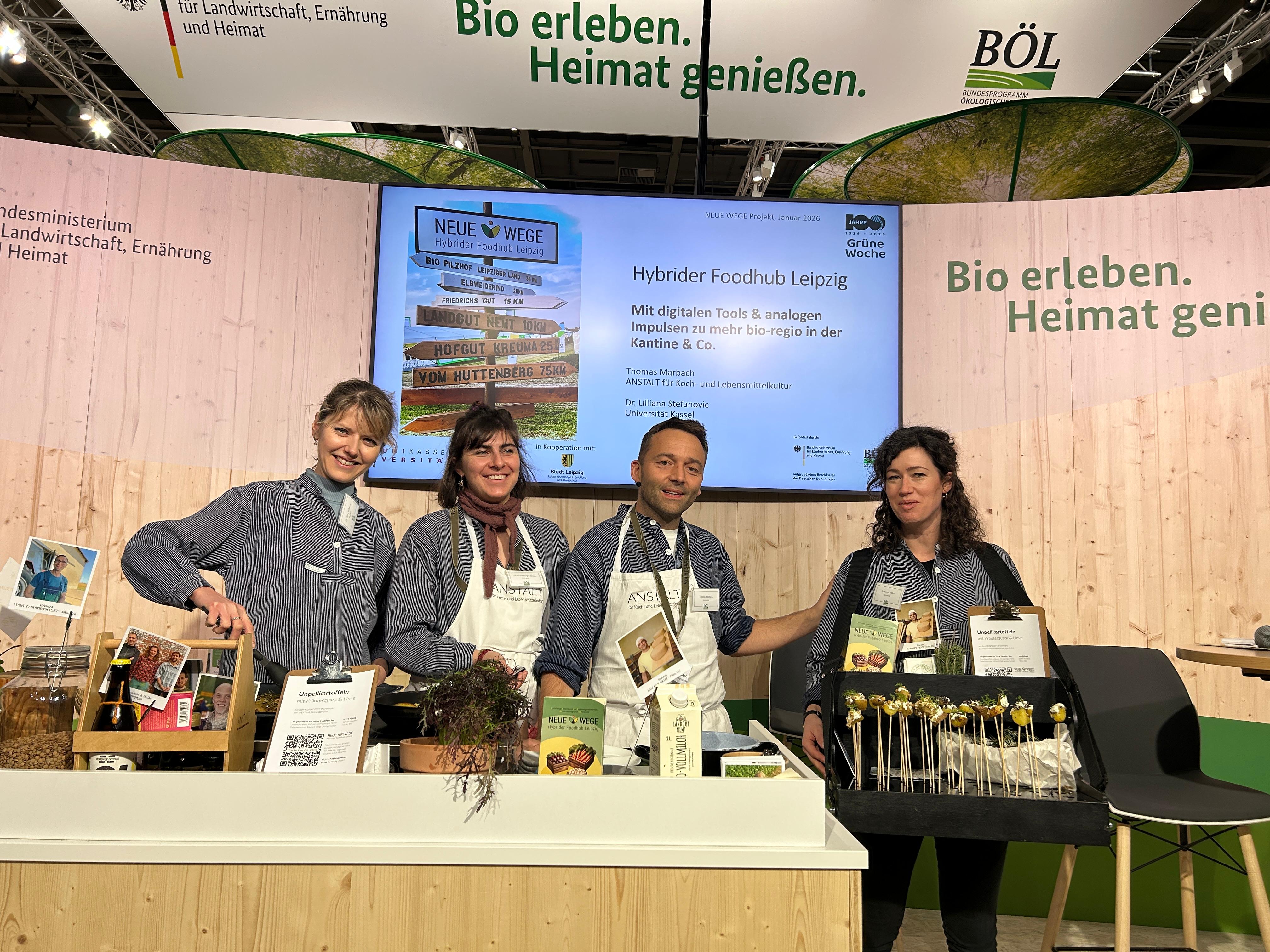 Auf der Bühne beim Talk & Verkostung sowie am Stand unter dem Dach der Bundesanstalt für Ernährung und Landwirtschaft, wurde durch das Team aus Wissenschaft und Praxis gezeigt, wie fruchtbar diese Verzahnung sein kann - das hybride Leipziger Modell und Ansätze, die quasi direkt in den Kochtopf führen.