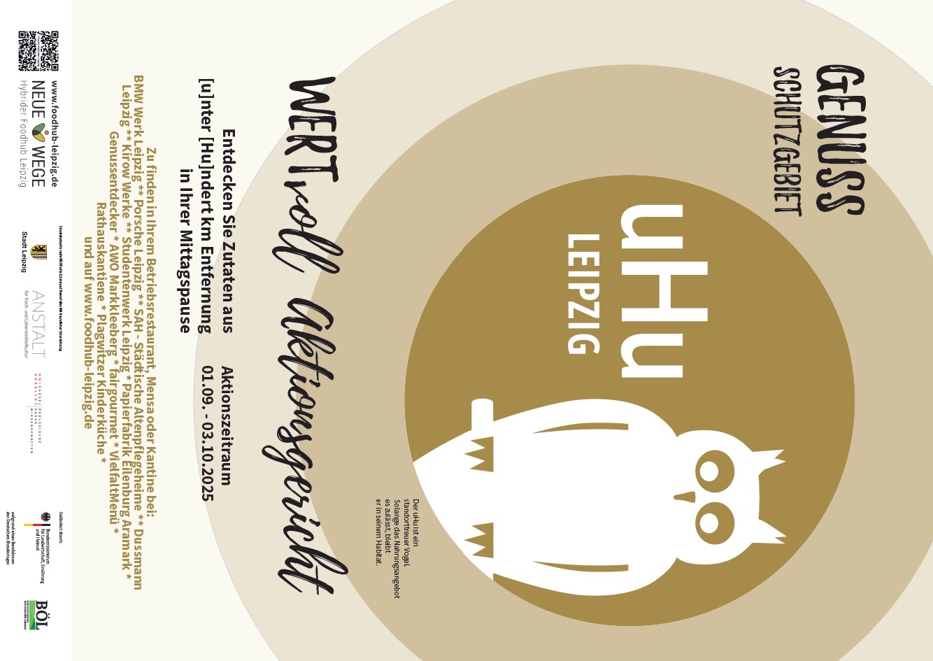 Sanft und leise kreist der uHu im September versuchsweise über Leipzig. Im WERTvoll Aktionsmonat unterstützt er damit Einrichtungen der Gemeinschaftsgastronomie beim Entdecken heimischer Zutaten und führt Schaaren von Gästen auf den Pfad des guten Geschmacks.